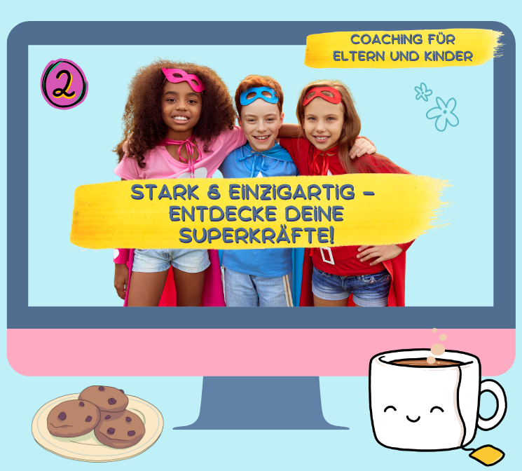 In diesem interaktiven Onlinekurs für Grundschulkinder entdecken wir gemeinsam die einzigartigen Stärken deines Kindes! Durch spannende Übungen und kreative Aufgaben lernen Kinder und Eltern, was sie besonders macht und wie sie ihre inneren Stärken nutzen können, um Herausforderungen zu meistern.
